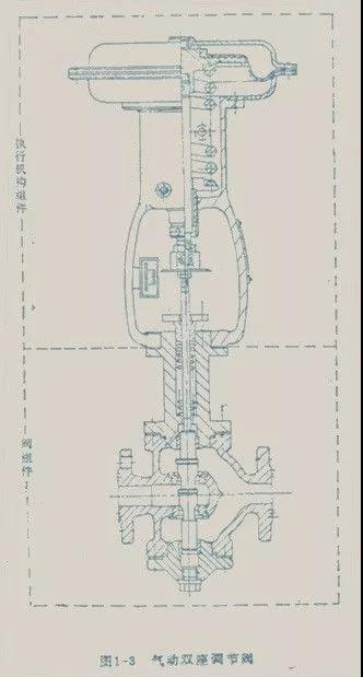調(diào)節(jié)閥一般由執(zhí)行機(jī)構(gòu)和閥組件兩個部分組成。在有些場合可帶有閥門定位器、手輪機(jī)構(gòu)等附件。調(diào)節(jié)閥中最典型的產(chǎn)品——?dú)鈩与p座調(diào)節(jié)閥的結(jié)構(gòu)如圖1-3所示。